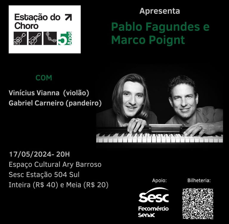 O projeto "Estação do Choro" traz um encontro harmonioso entre a gaita de Pablo Fagundes e o piano de Marco Poignt. A apresentação promete uma noite de sexta-feira com muita música e emoção.