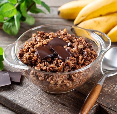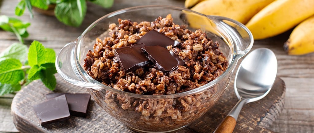 Leve a aveia e o leite ao fogo, mexendo até engrossar. Acrescente a banana, o cacau e a canela. Misture bem e finalize com mel e as sementes.
