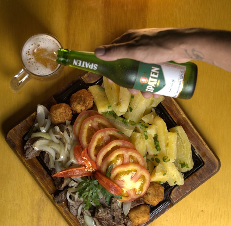 CARNE DE SOL - com mandioca e queijo coalho empanado + 02 Spaten direto do barril