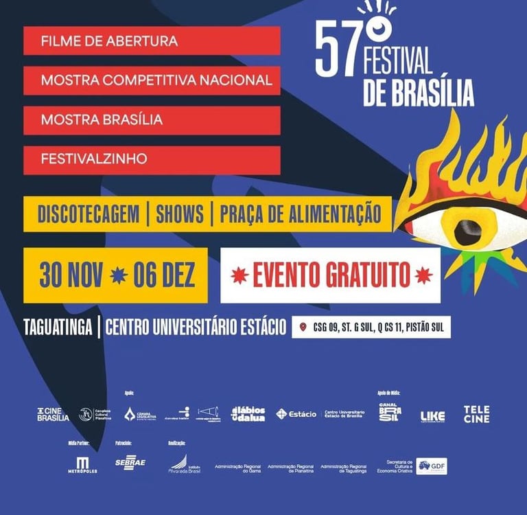 A 57a edição chega ao Gama, Planaltina e Taguatinga, unindo-se a parceiros estratégicos nestas RAs – Cia. Lábios da Lua (Gama), o Complexo Cultural de Planaltina e o Centro Universitário Estácio (Taguatinga) – para apresentar programação gratuita entre os dias 30 de novembro e 6 de dezembro.