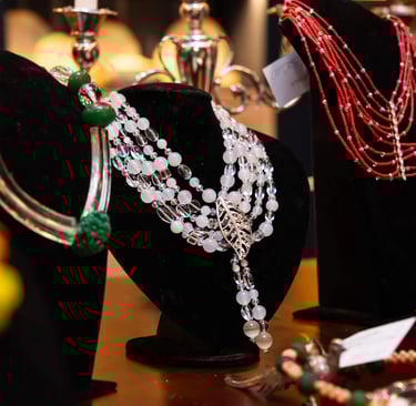 Com peças únicas feitas à mão, a exposição apresenta criações que combinam sementes brasileiras, capim dourado, miçangas, cristais e contas históricas garimpadas em diferentes países. A artista, que viveu em diversas cidades ao redor do mundo, imprime em cada colar uma narrativa visual marcada por identidade e diversidade estética.