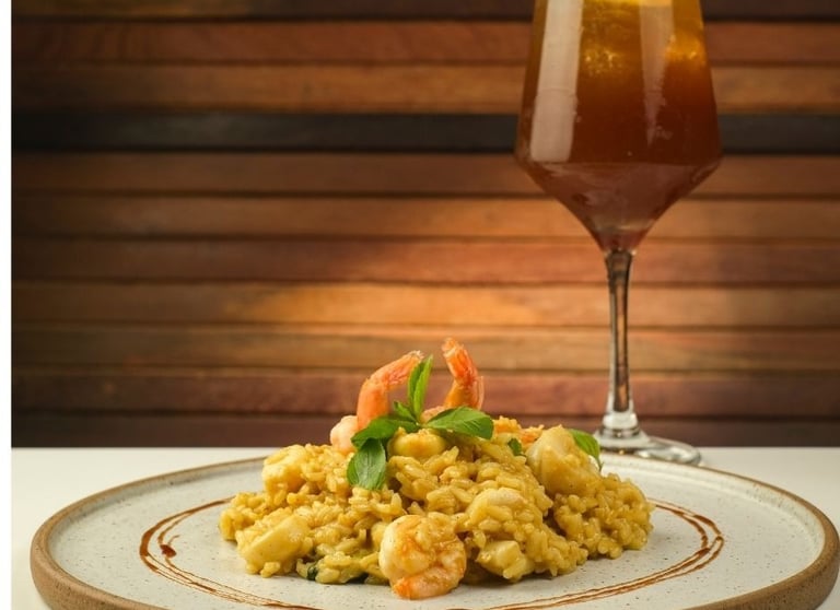 A curadoria de insumos permanece como princípio estruturante. Peixes selecionados, camarões de procedência controlada, cogumelos e grãos trabalhados no ponto exato compõem pratos que valorizam frescor e sazonalidade, pilares também da cozinha italiana. O risoto de curry com frutos do mar, por exemplo, evoca o Mediterrâneo em sua cremosidade e profundidade aromática, enquanto o filet mignon com risoto de shitake traduz o encontro entre técnicas orientais e a tradição dos arrozes do norte da Itália.
