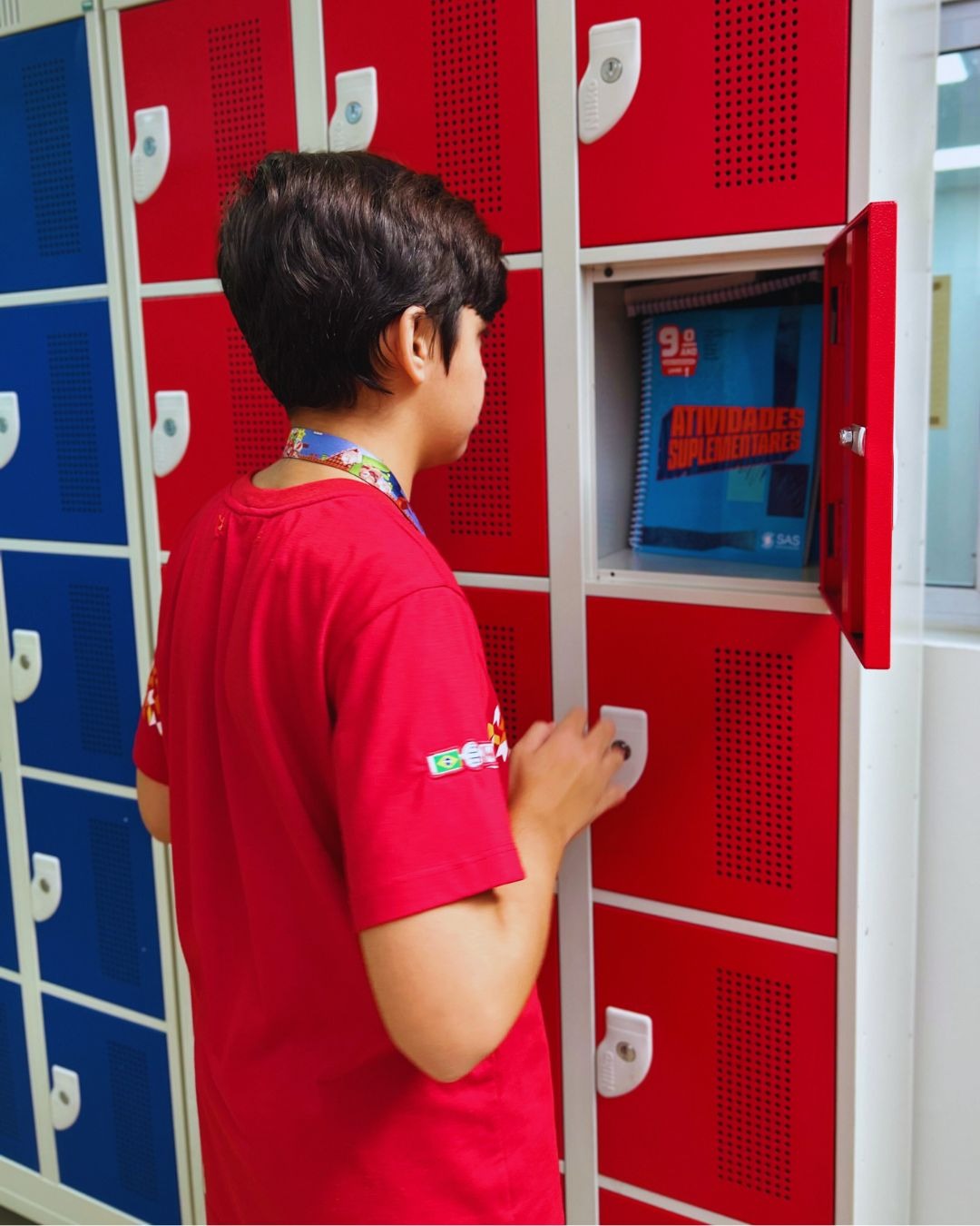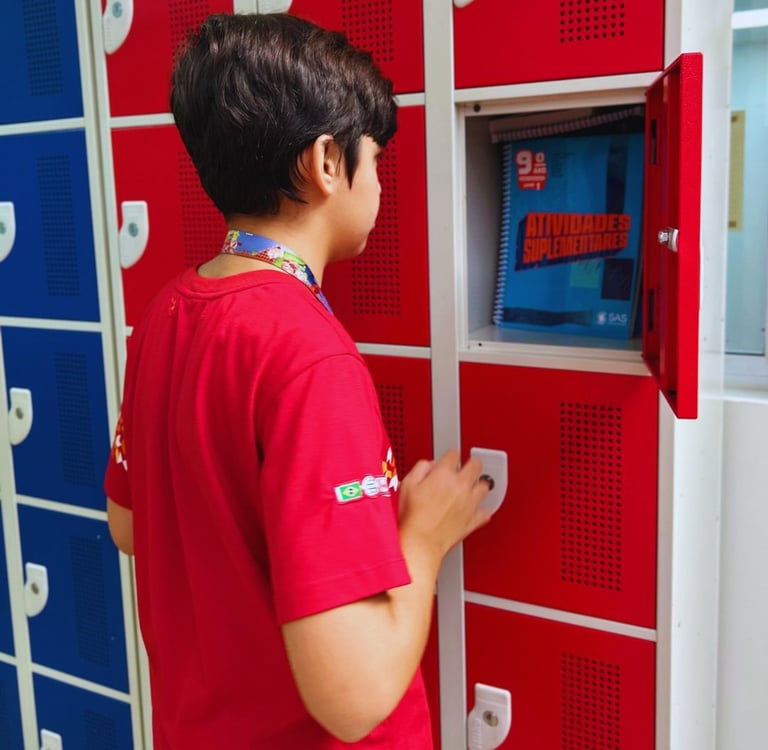Segundo o diretor da escola, Vitor Ramos, a instituição disponibiliza armários individuais para que os estudantes guardem seus materiais durante o dia. “Dessa forma, eles levam para casa apenas os livros e cadernos necessários para estudos e tarefas. Além disso, utilizamos livros digitais sempre que possível, reduzindo ainda mais a necessidade de carregar volumes pesados”, afirma Ramos.