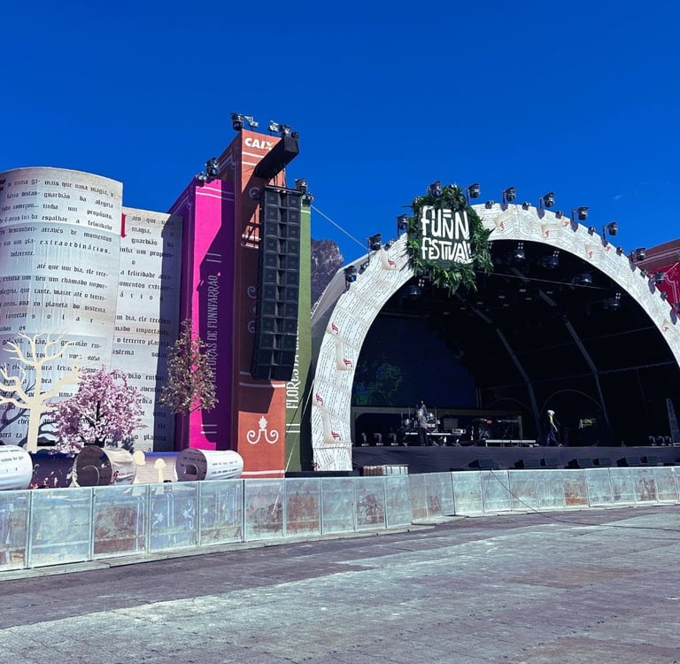 À direita do palco, um imenso livro aberto representa a história do urso Funnfarão, o mascote do evento, com capítulos ao redor, enquanto à esquerda, ilhas penduradas e um castelo transportam os espectadores para a Terra do Nunca. Essa narrativa visual será acompanhada por uma programação artística diversificada, que inclui grandes nomes da música brasileira e performances surpreendentes.