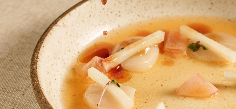 Entre os lançamentos, o Crudo de Vieira traduz com clareza a filosofia do novo verão Gurumê. A delicadeza da vieira crua é acompanhada por um sunomono de rabanete e pera asiática, em equilíbrio entre acidez e frescor. O molho à base de tucupi ancora o prato no território amazônico, enquanto o mix de azeites de romã e cariru adiciona nuances vegetais e textura aromática.