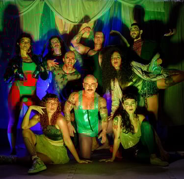 Com estética pulsante e atmosfera sensorial, o espetáculo tensiona a linha entre risco e coragem. Em cena, os artistas exploram seus próprios limites, transitando entre acrobacias, sombras e movimentos suspensos que evocam o instante anterior à queda, aquele momento em que o equilíbrio se transforma em resistência. A música em vinil, que reverbera como memória e afeto, cria uma camada nostálgica que dialoga com a fisicalidade e a delicadeza das ações no palco.